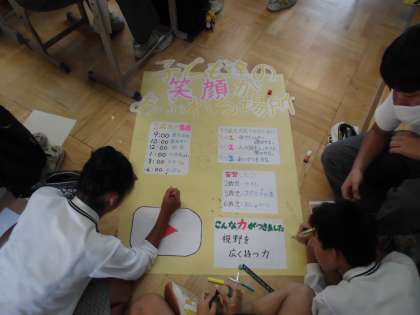 現在2年生は13日に行うチャレンジ体験のポスターセッションに向けて準備をしています。各事業所での体験を通じて感じたこと、考えたこと、学んだことをポスターにまとめてそれを1年生に発表します。ポスターも熱心に制作しているし、発表練習も緊張感を持って取り組んでいます。13日を楽しみにしています。是非ともポスターセッションを成功させてください。