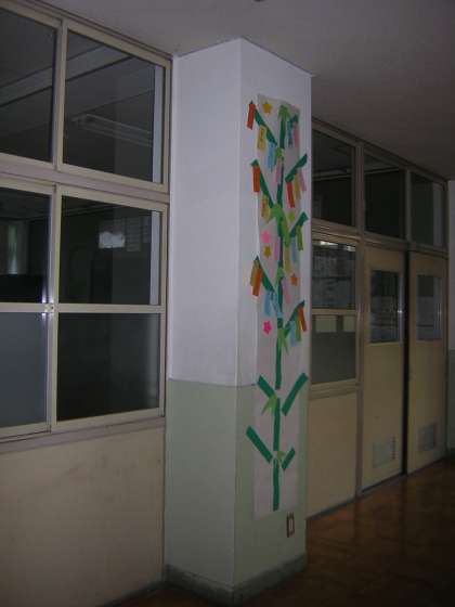 2・3階の各クラスの教室の前の廊下には七夕飾りが飾られています。少しのぞいてみると、学年によって書かれていることが違います。1・2年生は学級や部活に関する願い事、友だちや成績のことなどが主ですが、3年生は具体的な願いが増えてきます。やはり、進路に関する具体的な願い事が圧倒的に多く書かれていました。どうか今晩、彦星と織り姫が天の川で出逢えて、みんなの願い事がかなうことを願っています。