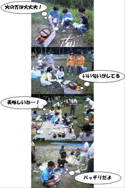 久しぶりの野外炊事に みんなは戸惑いと出来上がる楽しみとが