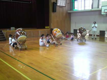 小学校は太鼓の演奏