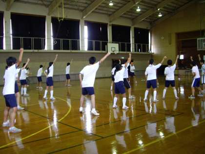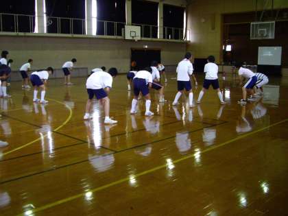 体育館に集まって DVDを鑑賞した後