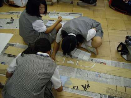 各クラス 一人一人が 「階段アート製作」に一生懸命取り組んでいました