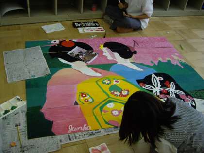 各クラスの共同美術の作品を 放課後も取り組んでいます