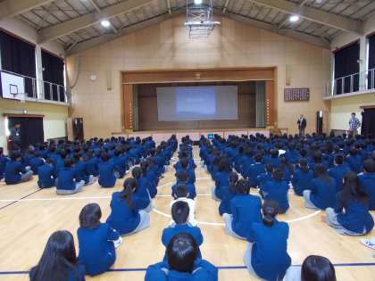 昭和22年(1947年)5月1日に開校して以来今年で71年目を迎えます。本日1限は創立記念の全校集会を体育館で行いました。校長先生からは、憲法記念日にちなみ憲法のお話をしていただきました。憲法制定の歴史や意義、社会のルールや学校の決まり、外律と内律について話がありました。自律心をしっかりもって、生徒一人ひとりの人権が尊重される学校にしていきましょう。