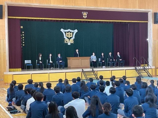 3月30日(月)、四条中学校で令和7年度『離任式』を行いました。