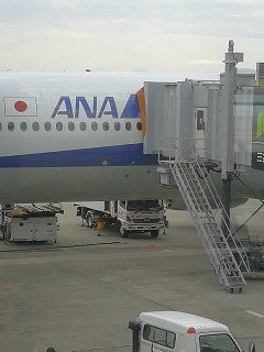 伊丹空港に到着しました。今からこの飛行機に乗って沖縄の那覇空港に向かいます。