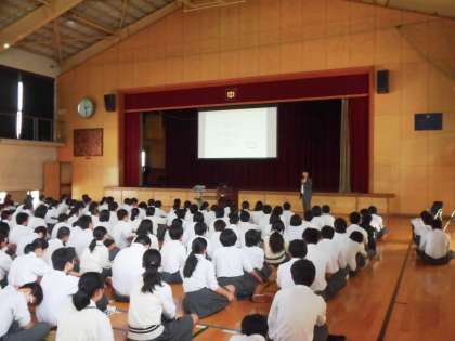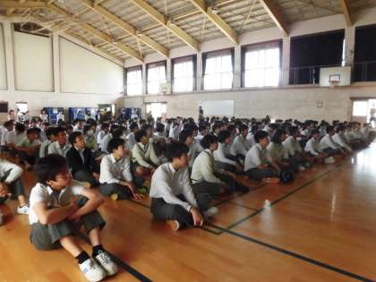進路選択に向けていろいろな取組を行っていますが,高等学校の先生から直接お話をお聞きする「進路講話」を実施しました。今日は第一弾として,私立高等学校の校長先生にお越しいただいて,お話していただきました。何のために勉強するのか,これから必要とされる力,私立学校の紹介など,高校選択のみならず,これからの生き方を考える上で大切な話をしていただきました。