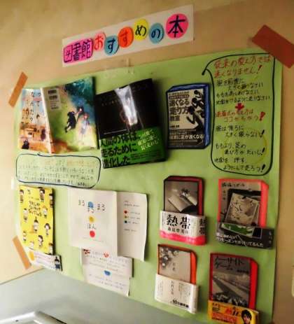 図書館のおすすめ本です。今話題の,この本もありますよ。