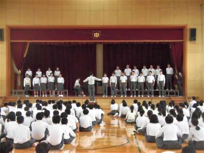 今日は,9日(金)に行われる合唱コンクールのリハーサルを行いました。ホールではなく体育館で,学年別で,マウスシールドをつけて,舞台上も密を避けるための並び方で…と例年とずいぶん様相が違います。その中でも,どうか心に響く合唱を作り上げてほしいと思います。