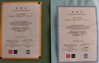 西京極中学校生徒会は,本年度も着なくなった子ども服を回収し、難民の方々など世界中で服を本当に必要としている人々に届ける活動,「服のチカラプロジェクト」に参加しました。本年度皆さんの協力を得て回収した子ども服は,アフリカ南東部のマラウイに届けられました。この協力に対して,感謝状をいただきました。ご協力いただいた皆さん,本当にありがとうございました。