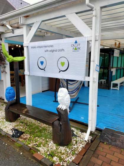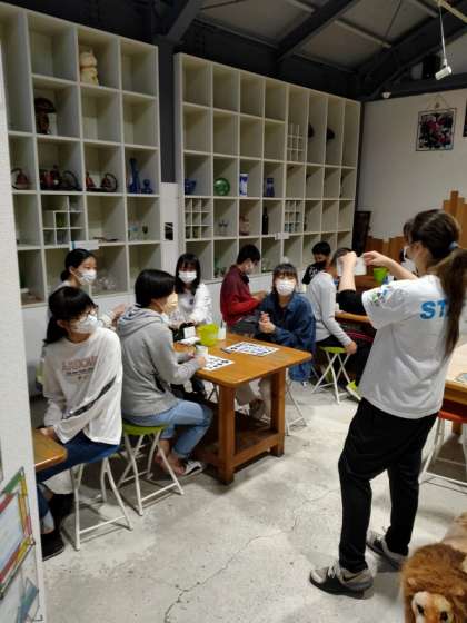 写真はサンドブラスト・ステンドグラス体験です。スタッフの方から説明を受けて,さあ作成開始です。
