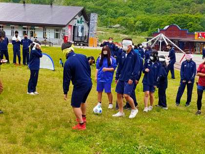 次は,ブラインドサッカーです。鈴の音を頼りにボールを運びます。心を澄ます瞬間です。