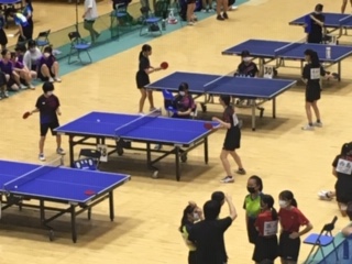 卓球部は今日府立体育館で団体戦です。1回戦、男子は東山泉と、女子は平安女学院と対戦しています。