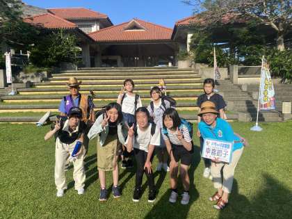 スローガンの「 N 仲間との 」は、クラスメイトや民家のお母さん、お父さんと過ごすことで「 K 絆を 」をはぐくみます。