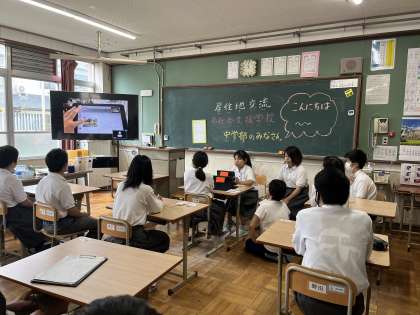 本日の1組は、1・2限と定期考査を行い、3限目に西総合支援学校の生徒と交流会を行いました。参加した西総合支援学校の生徒は、私たちと同じ西京極中学校の校区に住んでいます。本来なら、同じ教室ですごしているのですが、今は、学んでいる場所が違うため、ICTを使って交流会を行いました。互いに挨拶をした後、西京極中よりクイズを出題し、みんなで解き合いました。短い時間でしたが、「優しさあふれる交流会」が実施できたこと、大変うれしく思います。