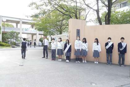 来週26日は生徒会役員選挙です。西京極中をさらにステキな学校にしよう!と、今年も2年生を中心にたくさん立候補してくれました。今日から選挙活動の一環として朝の挨拶をしてくれています。立候補者のみなさんの気持ちのいい挨拶で一日がスタートしています。