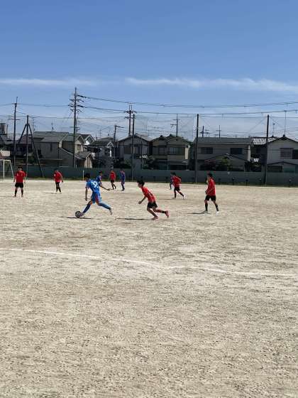 サッカー部は、順調に勝ち進んでいます。晴天の中、今日の試合も快勝しました。次も力を合わせて頑張ってください。