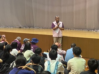 はじめに伊江島の方が踊りを踊って歓迎してくださいました。その温かさにふれ、私たちもひとり、またひとりと一緒に参加し始め、最後はたくさんが一緒に踊り、伊江島のみなさんとの一体感が高まってきました!