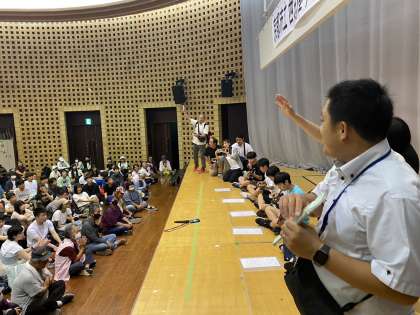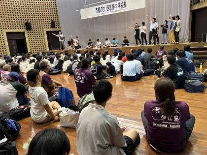 おはようございます。伊江港に到着し、退村式が始まりました。