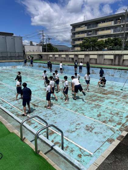 保健体育の授業で水泳学習が始まります。そのためにプール清掃を体育委員の皆さんが手伝ってくれました。ありがとうございました。
