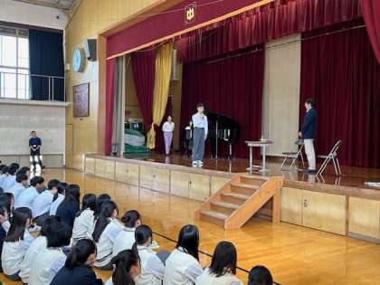 本日10日(木)の5限に、全校生徒で「全校合唱」の練習をしました。全校合唱の曲は、「ほらね、」。今回は、この曲を作詩された伊藤恵司先生にご来校いただき、全校生徒に合唱のご指導をしていただきました。