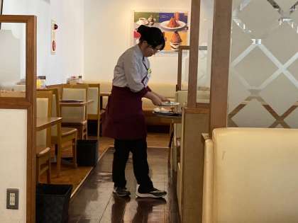 チャレンジ体験も後半戦。業務にも慣れてきて笑顔も増えたようです。疲れが出てお休みの生徒もいます。夜はゆっくり休みましょう。