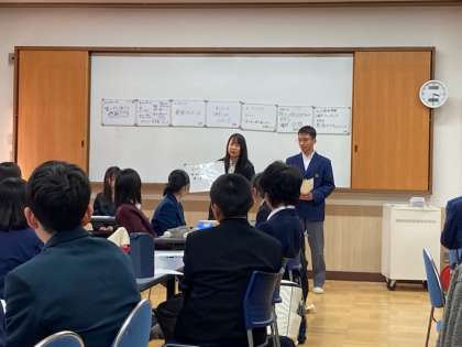 24日(火)の終業式の後、右京区の中学校の生徒会が集まる、「生徒会右京支部交流会」が四条中学校で行われ、西京極中学校の代表として生徒会が参加をしてきました。