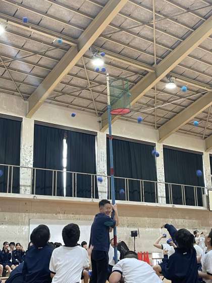 本日、1年生は学年全体でのレクリエーション活動などを通じて、「なかまづくり」を目的とした校内学習を実施しました。