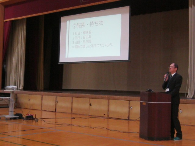 チャレンジ体験報告会の後、令和8年度の修学旅行の保護者説明会を行いました。