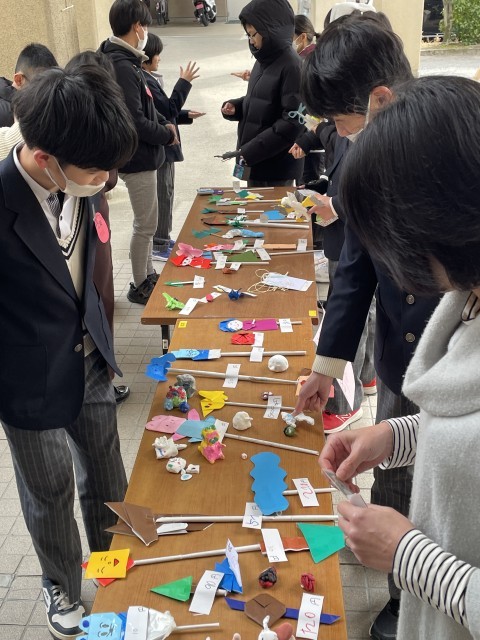 本日3月2日(月)5限目、1組では「岡本アウトレット」という取組として、1組の生徒が作成した作品の販売を行いました。
