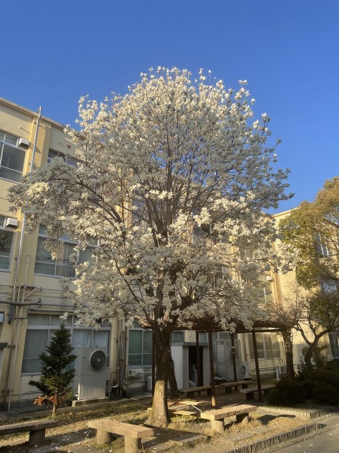 春の訪れを感じる暖かな日差しの中、本校の校庭では木蓮の花が見頃を迎えています。白く大きな花びらが青空に映え、登校する生徒たちをやさしく迎えてくれるようです。季節の移ろいを告げるこの美しい景色が、子どもたちの心にも穏やかな春の息吹を届けてくれることを願っています。