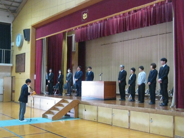 3月30日(月)の10時30分より、本校体育館にて、令和7年度離任式を挙行いたしました。