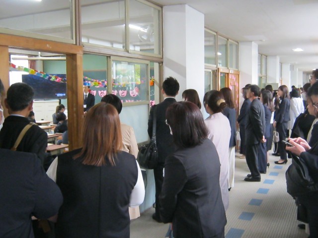 多くの保護者が見守る中、各担任の先生は書類等を渡し、