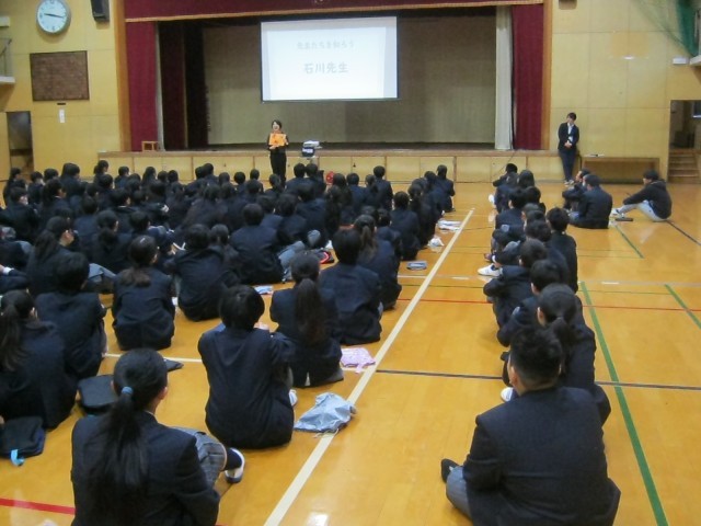 1年生は学年集会で先生の自己紹介や育成学級のお話、人間関係やコミュニケーションの取り方など、