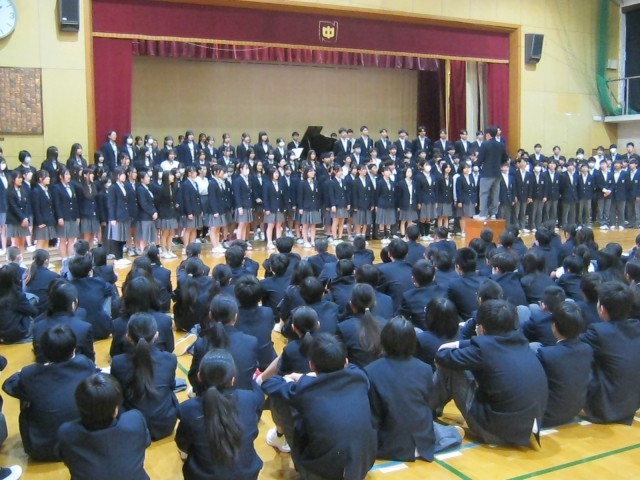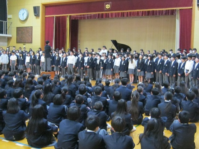 1年生の入学をお祝いし、2年生は「大切なもの」を学年合唱しました。