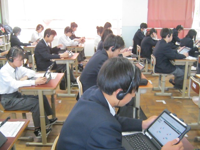 21日(火)の5・6限に、3年生を対象に全国学力・学習状況調査の英語3機能と質問調査をタブレットを使用して実施しました。