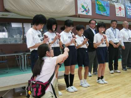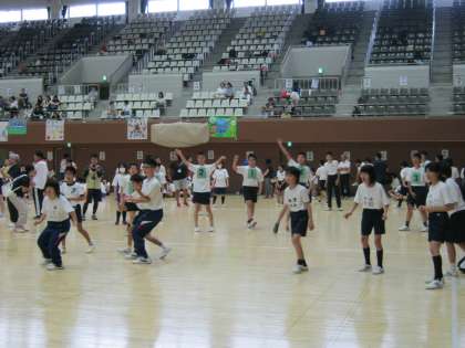 市内64の中学校の育成学級が集まり、球技大会を行いました。その開会式では本校生徒が「つくしのうた」の演奏を担当し、練習の成果を見事に発揮しました。