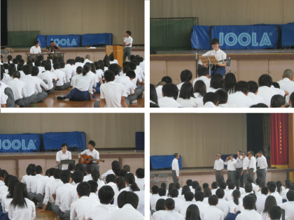 次に2組の歌。ギターも上手く、聴いている方との一体感がありました。次いで野球部の出番。3年全員が出て、ゴーグルとサングラスはどっちが格好いいか、白熱した議論を交わしていました。そして漫才で大笑い。どれもきのう1日で仕上げたそうです。