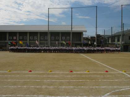 開会式が終わり、15分ほど予定より早く、一つ目の競技がはじまりました。この後も雨に備え、少しずつ進行を急ぎたいと思います。