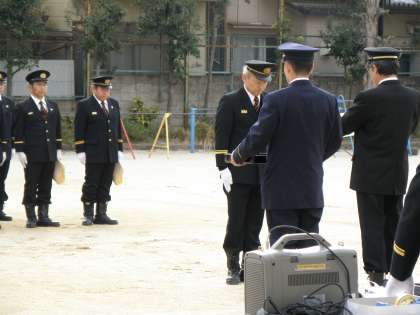 平成23年1月9日(日)に梅津小学校で行われた右京消防分団出初式に梅津中よリPTA会長、校長先生他が参加されました。