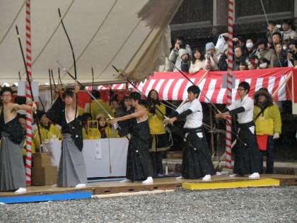 写真は三十三間堂でありました正月恒例の「通し矢」(大的大会)の模様です。