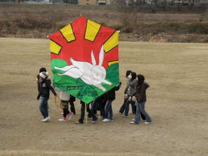 昨日23日(日)一週間延びていました全梅津凧あげ大会が実施されました。本校からは陸上部、凧制作の美術部が参加しました。