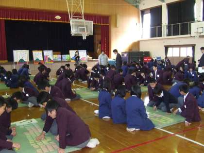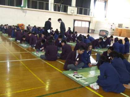 本日27日5,6限、1年生では百人一首大会が実施されました。本当にお正月らしい良い雰囲気でみんなとても頑張っていました。写真はその時の様子です。