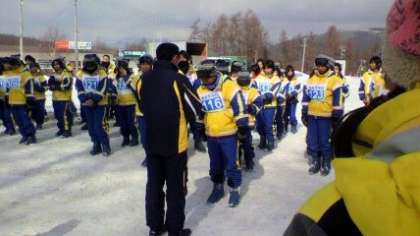 昨日とはうってかわって寒い中、最後の講習が終わりました。その後ペンションで昼食、12時25分頃にペンション街を出発しました。「おぎのや」へ寄り、一路京都へ戻ります。