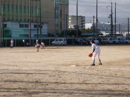 その1回戦。相手投手が、なかなかのピッチング。1本しかヒットが打てませんでした。こちらも2安打に押さえたのですが、完封負け。しかし、最後まで大きな声を出し頑張っていました。本校は1年生が多いチームなので、これからどんどん強くなっていくと思います。