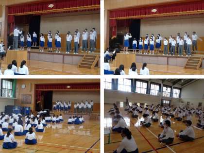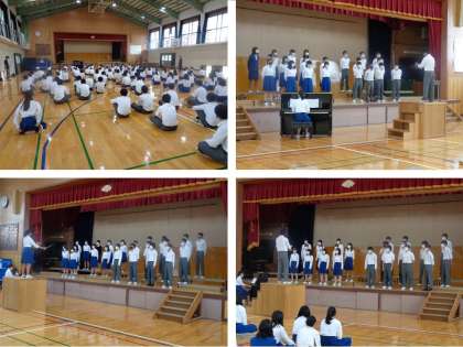5限目に3年生の合唱コンのリハが行われました。さすが3年生、緊張感が全然違いました。人数は1・2年生より少ないのに声量などは変わらない、大きいくらいでした。ホール開催ができず、残念なのですが、これだけ頑張ってくれると、本当に嬉しく思います。本番では順位をつけなければなりませんが、本当に高いレベルで審査は大変だと思います。本番までの取組が大切です。この機会にさらにクラスの絆を深めましょう!