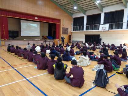 1年生は、非行防止教室を行いました。教育委員会より講師の原田さんに来たいただき、スマホやSNSの使い方を中心に、アニメや経験を基に、わかりやすく説明していただきました。集中して聞いてくれている姿に、原田さんもすばらしかったと言っておられました。話を聞いてわかったこと、しっかりと実行していきましょう。