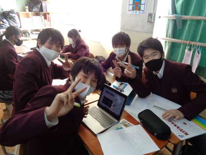 2年生は、修学旅行の事前学習を進めてくれています。コロナ禍が収まることを信じて、準備してくれています。いずれ一人一台配られるモバイルPCを試験的に使って調べてくれています。