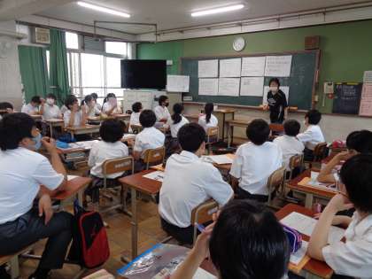 6限道徳。1年生は「ヒーロー」になれる人ってどんな人・・というテーマでグループごとに話し合いをしていました。みんなからリスペクトされる人ですね・・