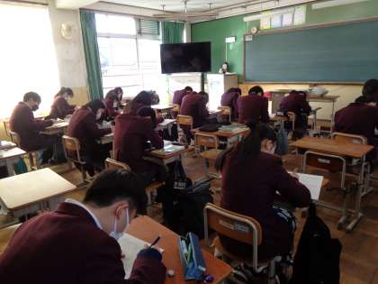 1・2年生も全クラス揃いました。学年末テストに向けて,ラストスパートです。明日の放課後の学習会は,オンラインで行います。TEAMSの学年のところで,参加の方法を確認してください。寒さ対策は万全にしてくださいね。